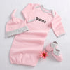 Details: Beautiful light-pink terrycloth hooded bath robe has embroidered puppy features, 3-D ears, light pink-and white-striped cuffs, a terry tie at the waist and a puppy-dog tail on the back. Can be personalized for an additional charge.