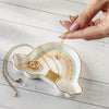These large scalloped plates feature gold foil on the sides with a lovely vibrant rainbow mid all over the design. Matching other Boho Rainbow Baby products, this plate sings with the quote "Oh Baby!". Featuring friendly clouds and rainbows, you can easily set your tables with a theme at your baby shower or place these plates by the buffet station for them to fill up on their own snacks.