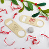 Details: Gold toned stainless steel flat bar shaped bottle opener with dual side use. Pad print personalization in Monogram design.
