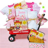 Having twins is such an exciting event, help the new parents celebrate with these personalized baby gift baskets. Each basket comes with two stuffed elephants, two hooded towels, and more. Either pink or blue the burp cloths and bibs are personalized with the new twins names. What an adorable welcome to this new world!