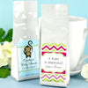 A delicious option for your guests, this fresh roasted coffee bag comes in a graceful, festive bag. As baby shower favors go, this little bag of delight takes the cake, or at least goes well with one! Personalized with your choice of design, this will definitely perk up your guests.