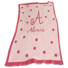 The excitement to show off a new bundle of joy is understandable. With this stroller blanket, display the child's name or initials in a solid-colored circle surrounded by bold stripes. This specific blanket displays the custom text in Ariel font and lower-cased only to make a perfect baby gift.
