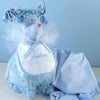 This extra soft short sleeve tee shirt is the perfect springtime gift for your little one. It's made of 100% cotton with a cotton diaper cover with a soft elastic waistband, rolled and tied with a ribbon (the personalization is placed on the back of the diaper cover). It also includes a coordinating infant size (adjustable) cotton twill hat to keep the sun off baby's delicate skin, which also includes personalization with baby's first initial, and name (up to 10 characters).
