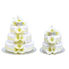 As featured on Entertainment Tonight, InStyle Magazine, and the Today Show! They're a necessity, but they can still be pretty - our diaper cakes give the gift of style and convenience at the same time! Custom designed by Bloomers Diaper Cakes, each comes on a silver scalloped platter and decorated with silk yellow orchid flowers and keepsake porcelain baby block.